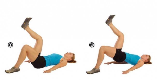 Три в одном: гибкость тазобедренных суставов, сила и стабильность корпуса. Лежа на спине поставьте левую ногу, согнутую в колене, на пол. Руки опустите на пол по бокам. Правую ногу поднимите. Теперь приподнимайте бедра, пока плечи и колени не окажутся на одной линии. Оставайтесь в таком положении какое-то время. При следующем повторе работайте другой ногой. Активно напрягайте живот и ягодицы - это поможет лучше удержать такое положение.