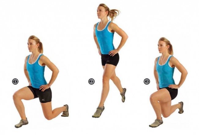 Прекрасно подходит для развития чувства равновесия и гибкости. Поставьте ноги на ширине плеч и сделайте шаг вперед. Согните переднюю ногу до параллели бедер полу. Взгляд направлен вперед. Руки на бедрах. Резко оттолкнитесь от пола передней ногой и, находясь в воздухе, поменяйте переднюю и заднюю ногу. Опуститесь таким образом, чтобы впереди оказалась другая нога. Затем снова подпрыгните и поменяйте переднюю и заднюю ногу. Когда заканчиваете прыжок, согните ноги. Так вы добьетесь большей стабильности при выполнении данного упражнения.