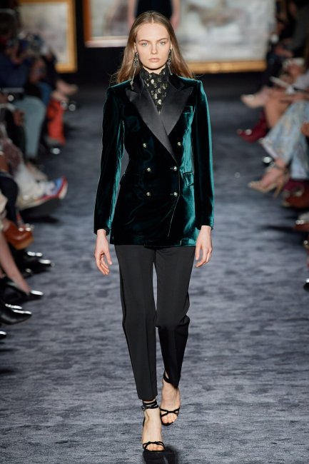 EtroБархат – один из любимых материалов в коллекциях Giorgio Armani. В этом сезоне осень-зима 2020/2021 дизайнер все также придерживался заданного вектора. На подиуме появились приталенные жакеты из черного бархата, которые соседствовали с яркими юбками и брюками, украшенными абстрактными цветочными узорами и животным принтом. Тем временем Balmain воспели в своей коллекции укороченные бархатные жакеты в армейском стиле, где вместо знаковых крупных пуговиц был ряд сверкающих кристаллов.