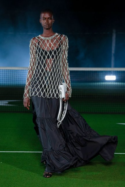 Victoria BeckhamПлатья-сетки уже несколько сезонов подряд появляются в коллекциях дизайнеров. Теперь же бренды решили пойти дальше и представили топы из рыболовной сети. У Burberry эти микро-варианты были надеты поверх верхней одежды, у David Koma - сверкающий сетчатый топ стал главным украшением вечернего образа, тем временем Nanushka показали повседневное применение сетки.