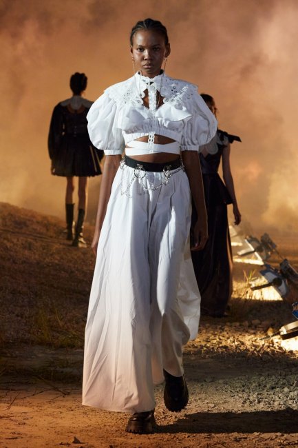 LanvinПомимо чувственных бралеттов, в этом сезоне выбирайте романтичные и женственные топы с объемными плечами. Сочетайте топ с огромными рукавами-фонариками с лаконичной юбкой по примеру Jacquemus, надевайте варианты с кружевными акцентами воротниками в паре с макси-юбками, как это делают Rokh, и комбинируйте топы с гигантскими воротниками, прикрывающими плечи с широкими брюками, вдохновившись коллекцией Schiaparelli.