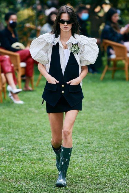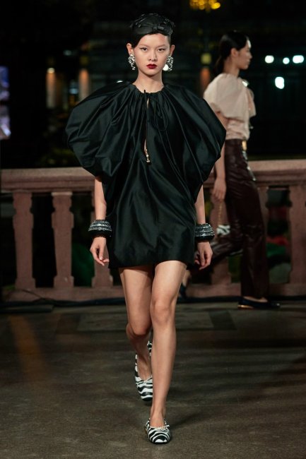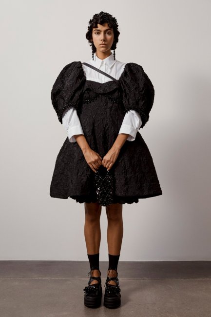 Carolina HerreraПлатья - отдельный объект любви дизайнеров и в новом сезоне они проявили ее с помощью объемных плеч и кукольных силуэтов. Lanvin показали вечерние мини-платья с объемными воротниками, перетекающими в рукава, Christian Siriano украсили игривое платье не только юбкой-баллоном, но и таким же воротником. А британская марка Simone Rocha снова сделала ставку на пышные рукава в историческом стиле.