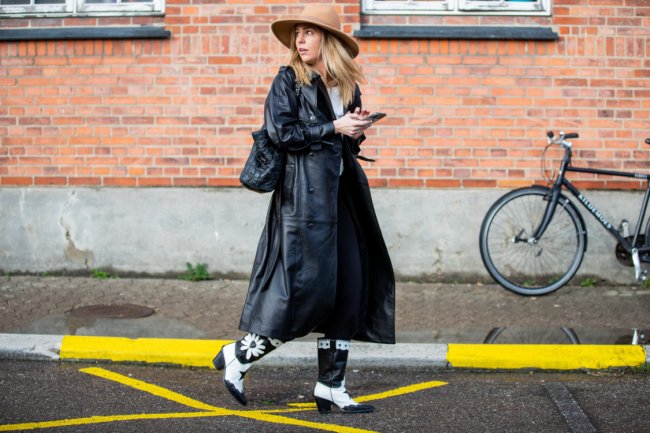 Еще одна фаворитка будущего сезона кожа также станет cowboy boots верной спутницей. Кожаные брюки, комбинезоны, широкие сорочки и плащи - все это хорошо работает с трендовой обувью. Добавив фетровую широкополую шляпу, можно почувствовать себя героиней гангстерского фильма.