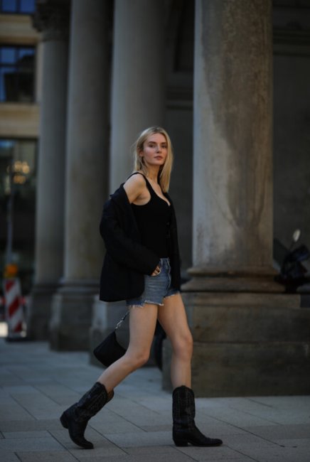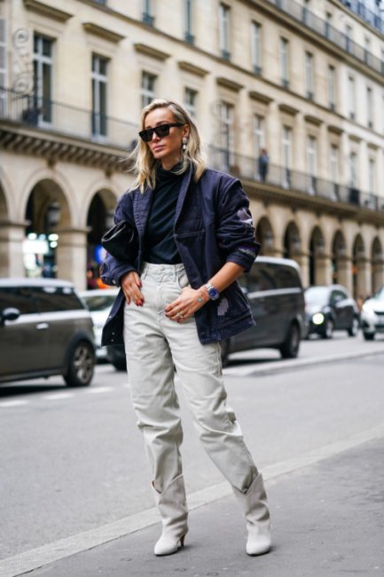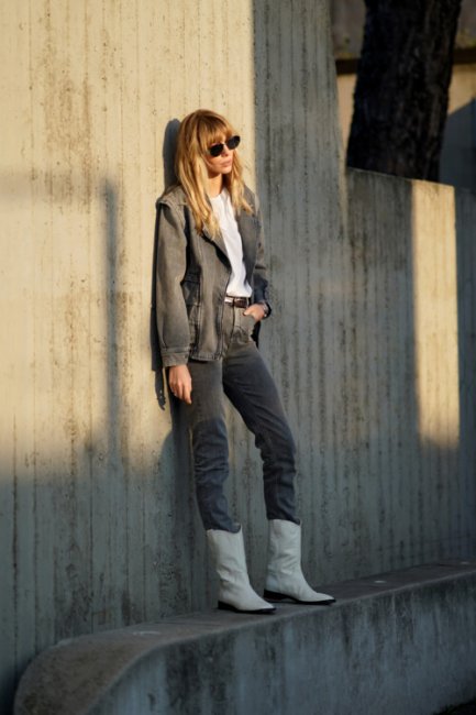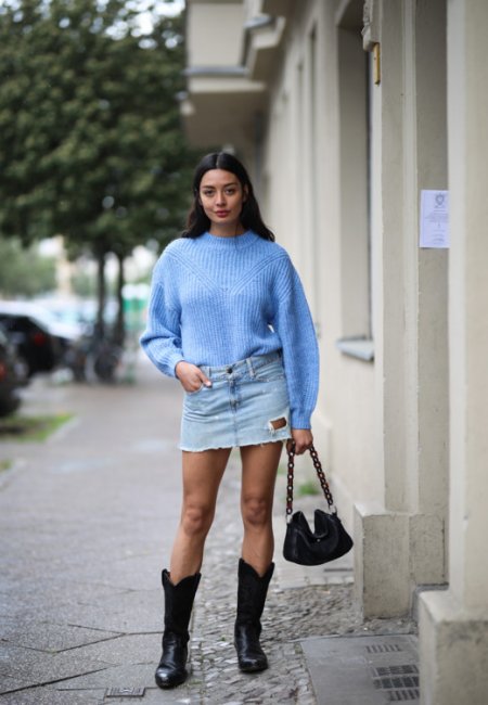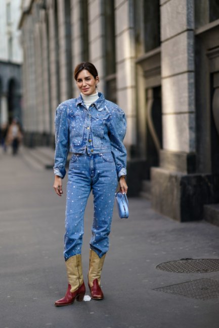 С денимомDenim total look - заметный подиумный тренд будущего сезона. Создать эффектный образ помогут ковбойские сапоги: заправить джинсы в обувь или присобрать длину и оставить сверху - выбор за вами.