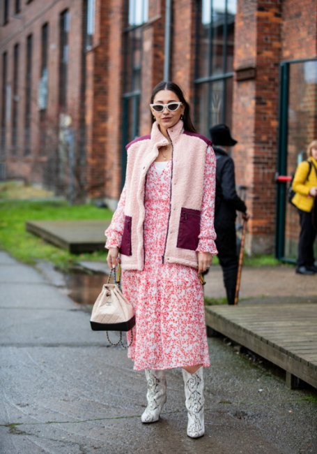 Самая комфортная длина юбок и платьев хорошо рифмуется с высокими ковбойскими сапогами. Такая комбинация выглядит органично и свежо и точно придется по вкусу поклонницам стиля бохо.