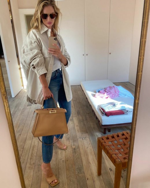 Супермодель и известная модница Рози Хантингтон-Уайтли является одним из самых значимых фешн-инфлюенсеров сегодня. За ее жизнью следят более 11,5 миллионов поклонников в Instagram, а ее стиль вдохновляет девушек на смелые эксперименты. В своем гардеробе Рози делает ставку на базовые практичные вещи, выполненные в новом прочтении, элегантные детали и классическую цветовую гамму. Супермодель часто любит показывать новые streetstyle-образы в Instagram с помощью серии снимков, сделанных в зеркале у себя дома.