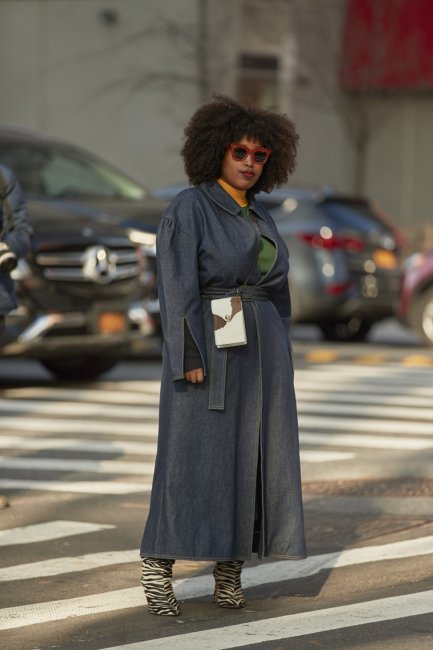 Isabel Marant, Pre-Fall 2020Особой любовью модницы прониклись к мини-платьям из денима. В тандем к ним it-girls выбирали высокие сапоги и массивные, но лаконичные украшения – серьги-кольца или кольца-печатки. Эффектно и необычно смотрятся джинсовые платья-пальто длины миди –вещь, способная хорошо выполнять обе функции. Их модницы дополняли актуальными kitten heels и геометрическими сумками. Если хочется совместить два тренда, звезды streetstyle-хроник советуют обратить внимание на сочетание платья из денима и анималистичных принтов: особенно в таком комбо хорошо смотрится принт, имитирующий окрас зебры, например, на высоких драпированных сапогах.