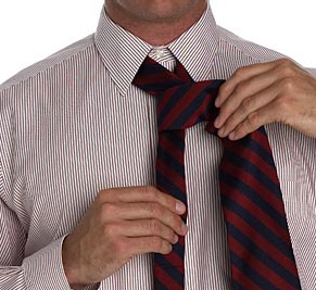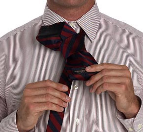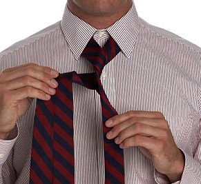 Четверной узел (Four-in-hand) Этот узел также известен как простой. Четверной узел считается самым популярным способом завязывания галстука благодаря своей простоте. Этот узел появился в Англии в те времена, когда по улицам ездили кареты, запряженные четвёркой лошадей. Возницы завязывали галстуки именно таким образом, чтобы они не хлопали на ветру. Такой узел завязывается на узком конце галстука, он немного ассиметричен, и подходит для всех случаев жизни. Лучше всего использовать с галстуками из тяжёлых тканей, с воротником "таб", воротником "баттен-даун", или воротником с удлинёнными концами. Этот классический узел уместен в любой ситуации и наиболее широко используется.