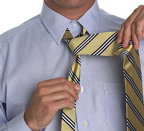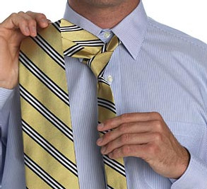 Если концы галстука не совпадают, начните заново, соответственно подрегулировав длину широкого и узкого концов. Убедитесь, что галстук хорошо лежит под воротничком, и выровняйте узел строго по центру.