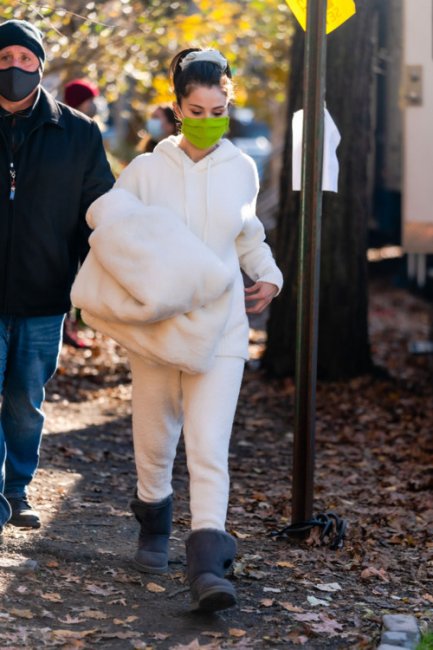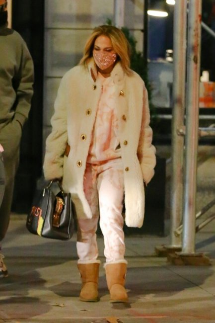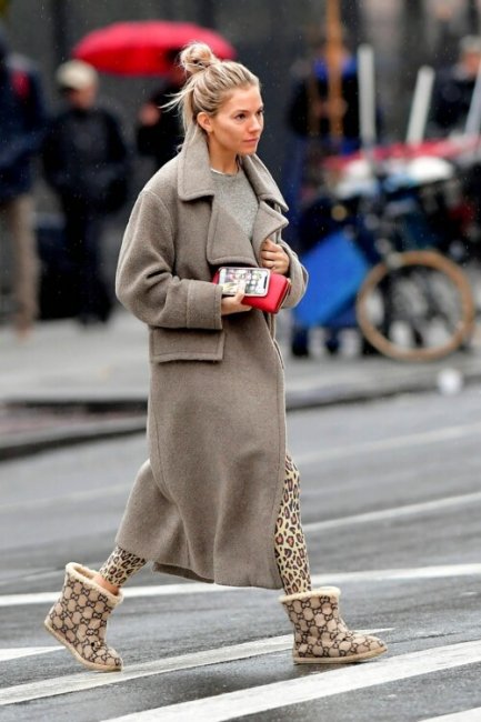 В этом сезоне очень-зима 2002/2021 невозможно устоять перед комфортными уггами. Культовые ботинки 2000-х годов вновь вернулись на модную арену и пополнили гардеробы streetstyle-звезд и знаменитостей. Так, следом за Ириной Шейк, Эмили Ратаковски и Дженнифер Лопес, стильную зимнюю обувь примеряла Дуа Липа. Американская звезда была замечена в Нью-Йорке в классической паре уггов после выступления на Saturday Night Live. Дуа вышла из студии в модном ансамбле, состоящем из кожаной куртки Balenciaga, черных джоггеров и бежевых угг. Завершающим элементом стала ярко-синяя шапка-бини и неоновые очки.