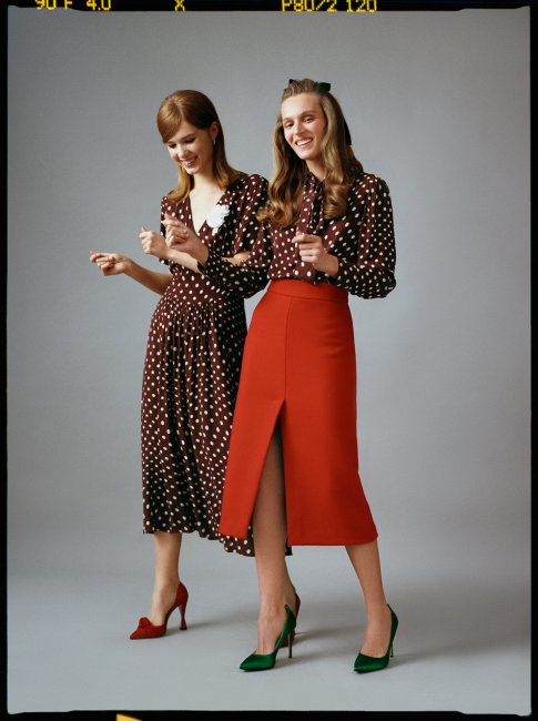 Платье, Alexa Chung; белый цветок, Philosophy; красные туфли, Aquazzura; блуза, Alexa Chung; юбка, Red Valentino; зеленые туфли, SJPВ любом случае, домашняя атмосфера легко вдохновляет как на эксперименты, так и на практичные решения, которые легко осуществить благодаря праздничным скидкам ЦУМ до -50%.