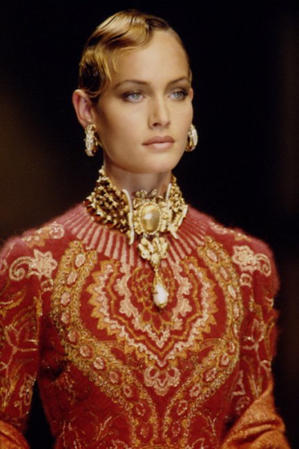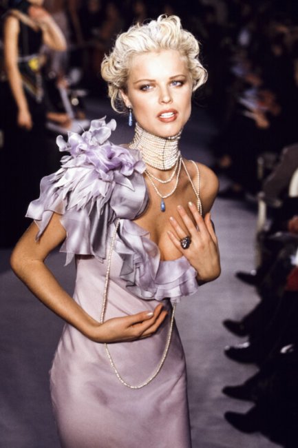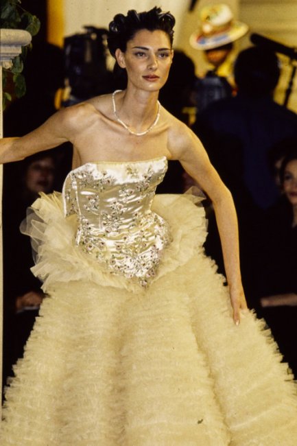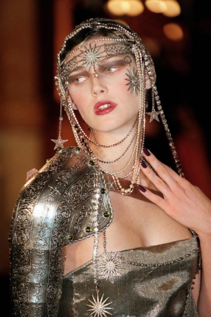 Сегодня мы вспоминаем кутюр образца 1990-х годов, когда мода стала более массовым увлечением благодаря феномену супермоделей, наблюдать за которыми хотели все большее количество зрителей. Кутюрные показы того времени запомнились не только эффектными силуэтами, но и ослепляющими украшениями. Иногда супермоделям вообще ничего не требовалось кроме последних. Так, в 1997 году канадская звезда Шалом Харлоу дефилировала на кутюрном шоу Christian Dior в едва заметном на ее теле колье, украшавшим не только шею, но и туловище. Джон Гальяно тогда был только назначен на должность креативного директора Дома и его поток фантазии было не остановить.