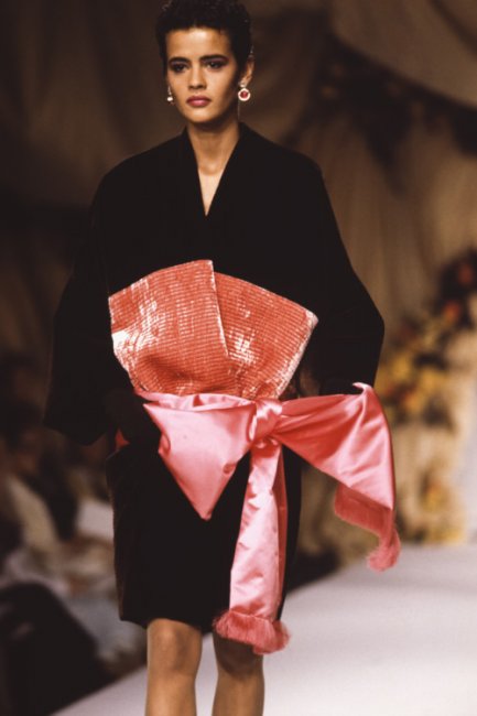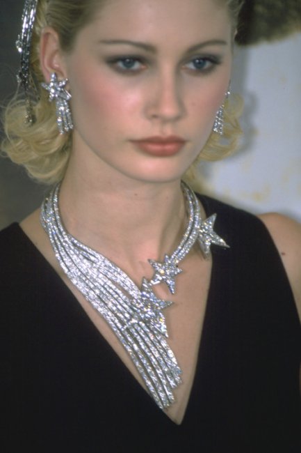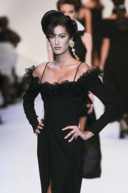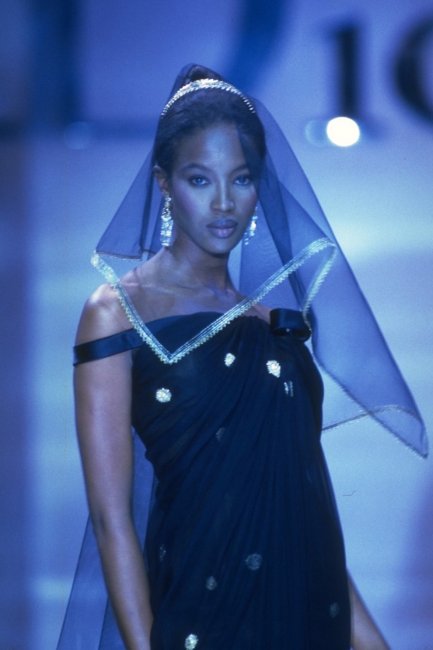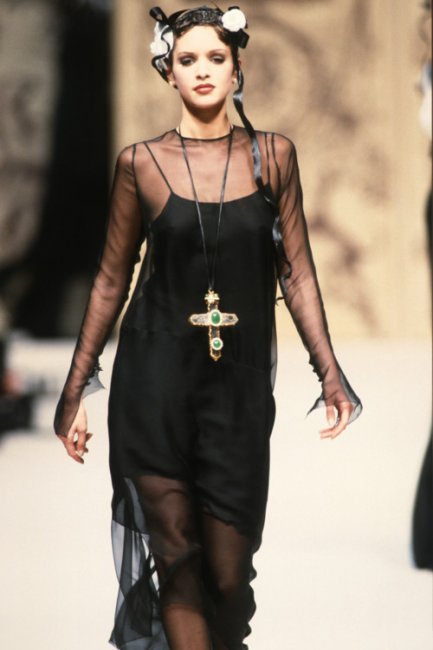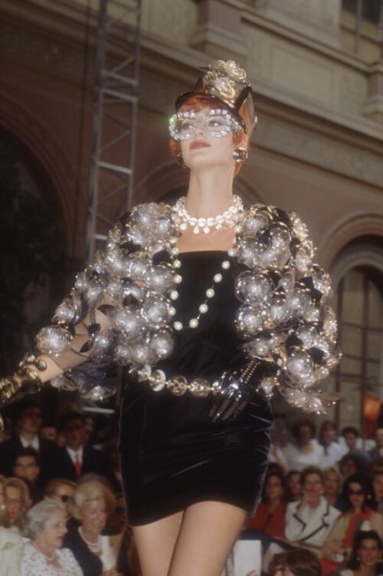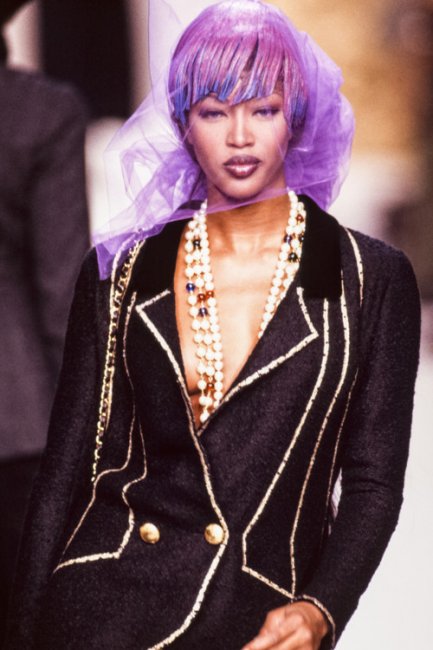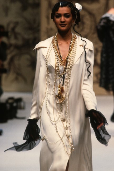 Кутюрные шоу Chanel того времени запомнились потоками жемчуга, драгоценными звездами и маленькими черными платьями, украшенными крупными золотистыми цепочками. Примеряли их не менее яркие девушки, среди которых особенно выделялись Наоми Кэмпбелл и Кристи Тарлингтон.