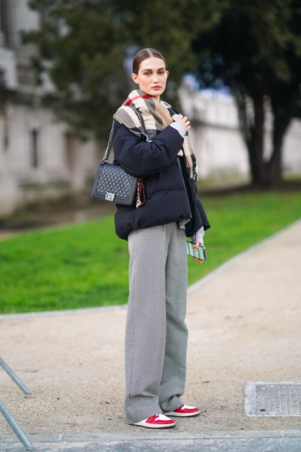 StreetstyleЭтой зимой гости кутюрной Недели моды отложили нарядные платья и каблуки и сделали выбор в сторону денима, кроссовок и объемной верхней одежды. Девушки сочетали прямые джинсы с дутыми куртками и элегантными пальто, дефилировали в широкие брюках в клетку и дубленках-авиаторах, а также надевали трикотажные костюмы с кедами. Вместо шарфов модницы повязывали на плечи объемные свитера и брали в руки культовые сумки брендов. Vogue.ua собрал лучшие образы streestyle-активисток на Неделе высокой моды в Париже.