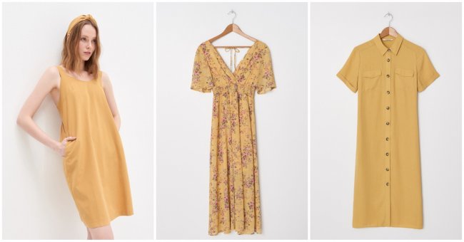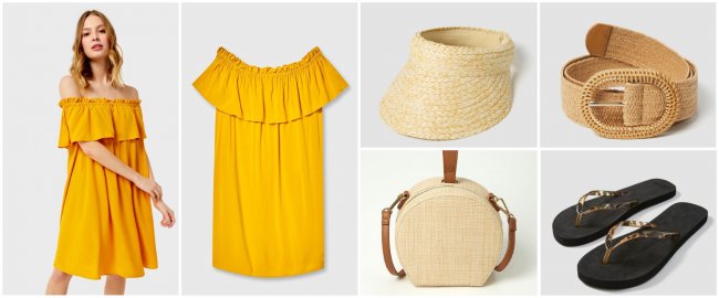 На девушку в желтом хочется оглядываться как в знаменитой песне Максима Леонидова. Стоит этим пользоваться! Летом 2020 года будут популярны мини-фасоны с открытыми плечами, в которых так и хочется перенестись на песчаное побережье. В городе отпускной флер можно сгладить с помощью белых кроссовок на объемной подошве и массивных аксессуаров.