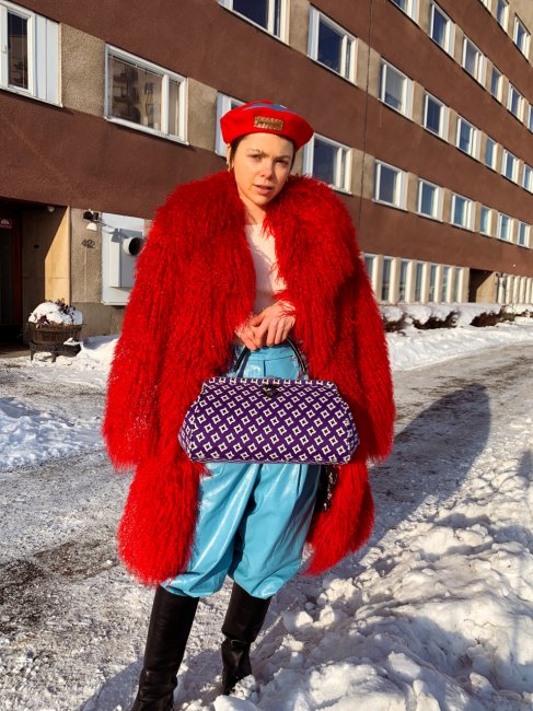 Стритстайл на Неделе моды в КопенгагенеЦветная кожа – еще один прошлогодний тренд, который не теряет своей актуальности и в 2021 году. Например, брюки из цветной кожи можно сделать как частью яркого многослойного образа, так и на их основе выстроить лаконичный ансамбль.