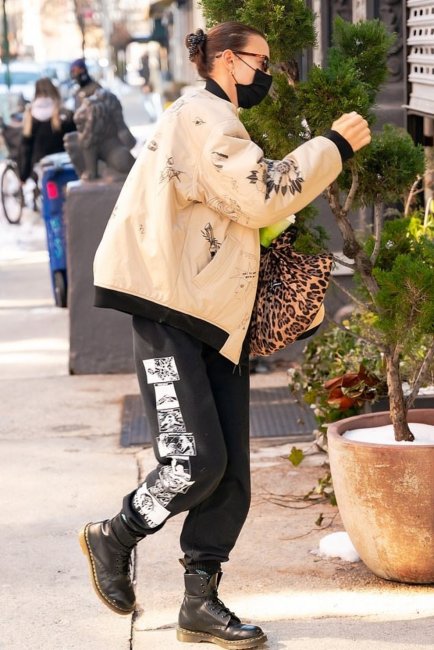 Среди самых актуальных трендов нового сезона особого внимания заслуживают бомберы. Просторная куртка с эластичными манжетами на рукавах и талии, которая ранее ассоциировалась с униформой летчиков, а позже стала знаковым элементов гардероба американских студентов, этой весной вновь вернулась на модные подиумы и в streetstyle-хроники. Ирина Шейк, как один из главных трендсеттеров, уже приобрела себе модную модель. Так, на днях топ-модель была замечена на улицах Нью-Йорка в двустороннем меховом бомбере украинского бренда TTSWTRS. Ирина надела куртку с графическим тату-принтом, отдав предпочтение светлой стороне бомбера. Свой образ Шейк дополнила джоггерами Jesse Jo Stark и грубыми ботинками Dr.Martens.
