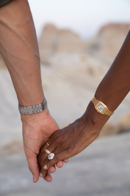 Жасмин Тукс и Хуан Давид БоррероФото: vogue.comЖасмин быстро собрала чемоданы, и они сели в машину. По пути Борреро завязал ей глаза. Их первой остановкой стало место, где они встретились: Rose Cafe в Венеции, Калифорния. После пара направилась в аэропорт, чтобы полететь в еще одно особенное место. «Он так хорошо меня знает, Борреро заказал мой любимый кейтеринг Popeyes – я была в раю! Мы ели куриные котлеты и пили шампанское, пока не приземлились в Пейдже, штат Аризона. Затем мы пересели на вертолет, который доставил нас в самое красивое, потустороннее, уединенное место посреди пустынных скал в Юте. Там были только мы».