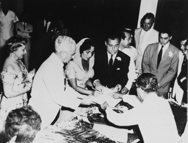 Хотя Элизабет Тейлор восемь раз была замужем, она только один раз надела традиционное свадебное платье на церемонию бракосочетания. Во всех остальных случаях Элизабет предпочитала то элегантные костюмы-двойки, то цветные подвенечные платья. Vogue.ua вспоминает все свадебные образы Элизабет Тейлор.