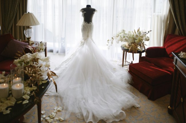 Свадебное платье Влады СеданНадеть подвенечное платье этого легендарного бренда мечтают невесты по всему миру, и Влада стала одной из них. Она выбрала женственное и элегантное платье-рыбку с подчеркнутой линией декольте и длинным сложным шлейфом. Платье из коллекции Lе Secret Royal I под названием Ms. Elle было вдохновлено образом королевского белого павлина и украшено роскошной вышивкой, кристаллами и жемчугом. Образ дополнила лаконичная белая фата и сверкающий обруч.